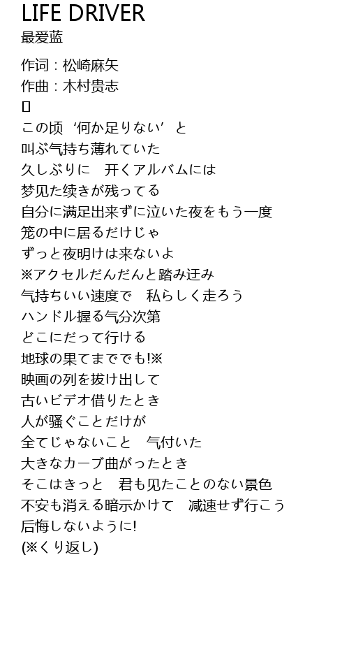 | 不安も消える暗示かけて 减速せず行こう | |
