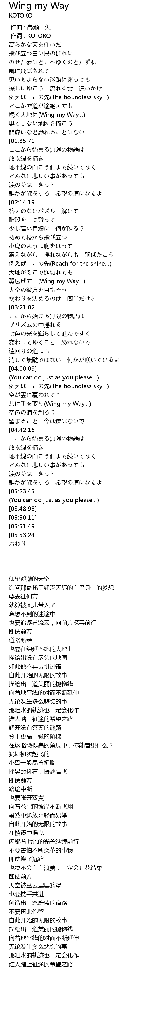 | [03:05.75] | 翼広げて (Wing my Way…) |