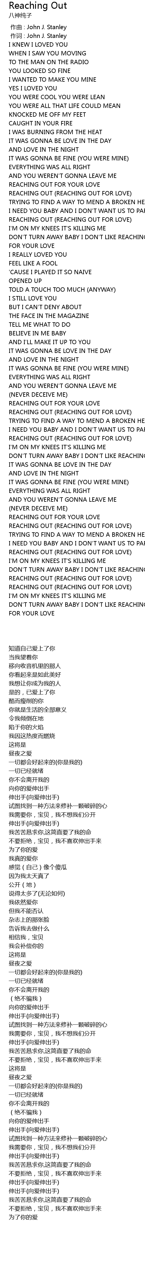 | [04:21.650] | REACHING OUT REACHING OUT FOR LOVE |