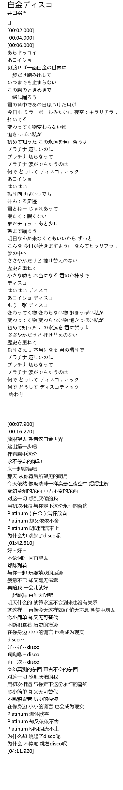 | [03:58.360] | プラチナ 涙がでちゃうのは |
