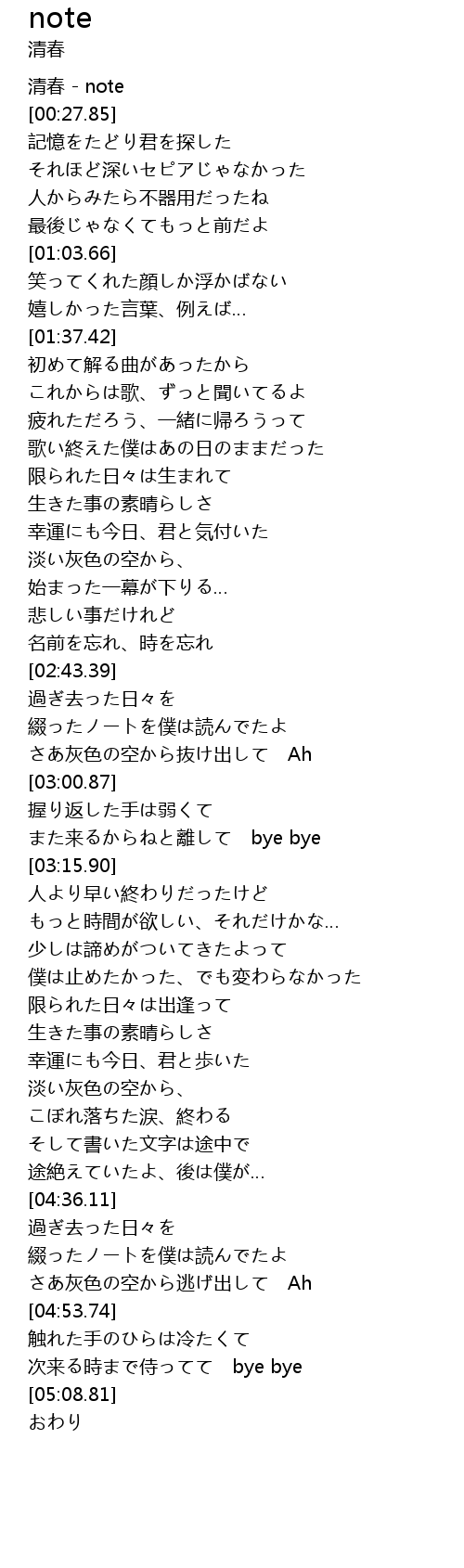 | [04:38.99] | 綴ったノートを僕は読んでたよ |