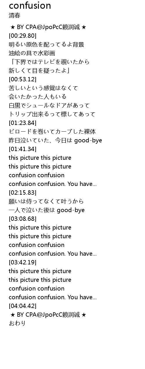 | [03:54.20] | confusion confusion |