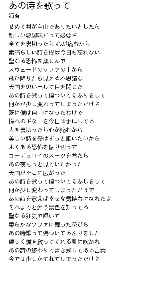 | あの詩を歌って傷ついてるふしをして | |
