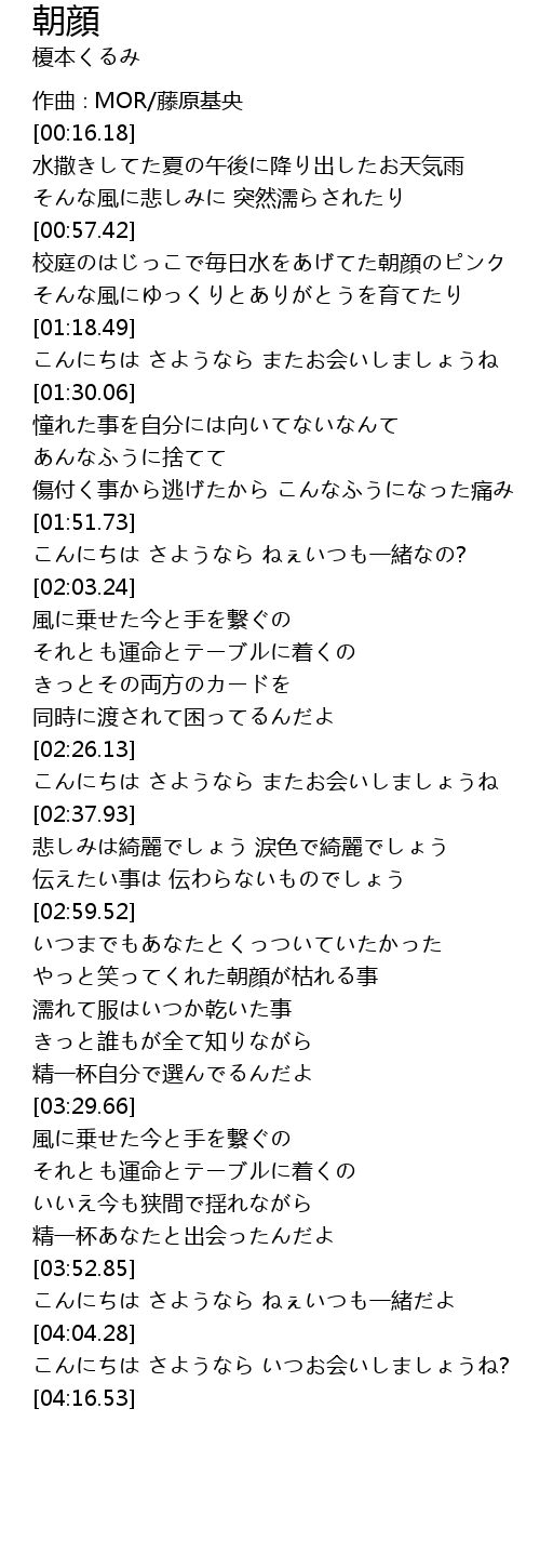 | [03:06.65] | やっと笑ってくれた朝顔が枯れる事 |