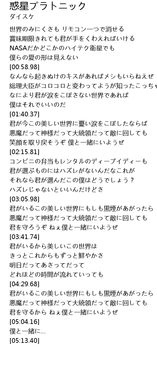 | [04:33.48] | 君がいるこの美しい世界にもしも黒煙があがったら |