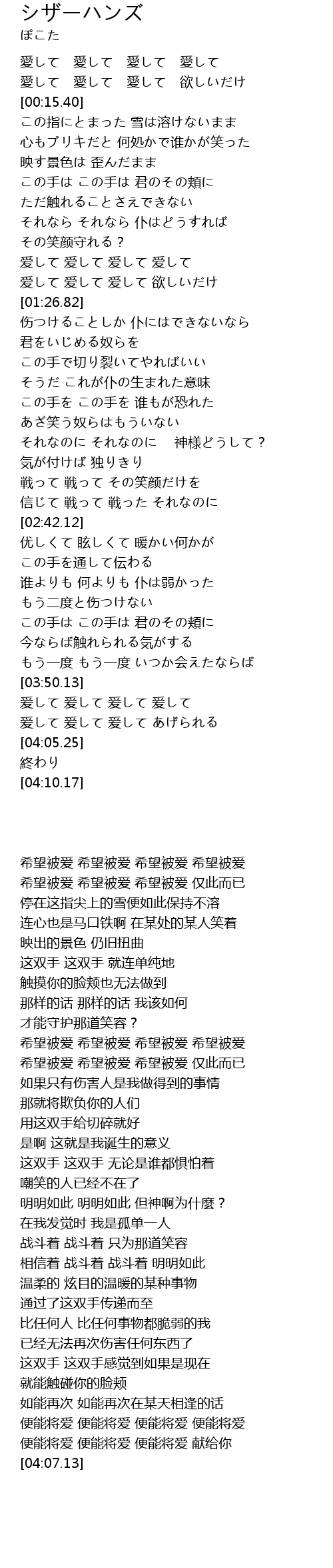 爱して 爱して 爱して あげられる |
