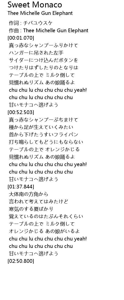 | [02:47.903] | 甘いモナコへ逃げよう |