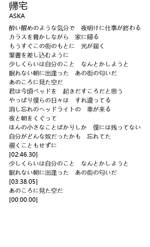 | [00:23.47] | カラスを脅かしながら 家に帰る |
