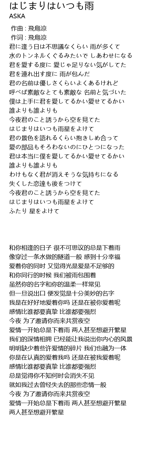 はじまりはいつも雨 yu Lyrics