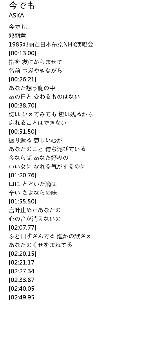 | [00:07.00] | 1985 dèng lì jūn rì běn dōng jīng NHK yǎn chàng huì |