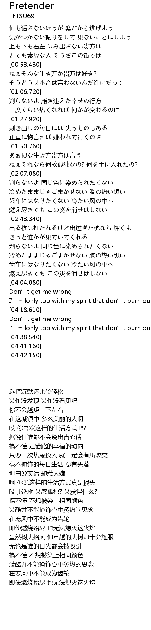 | [01:42.890] | 正直に物言えば 嫌われて行くのさ |