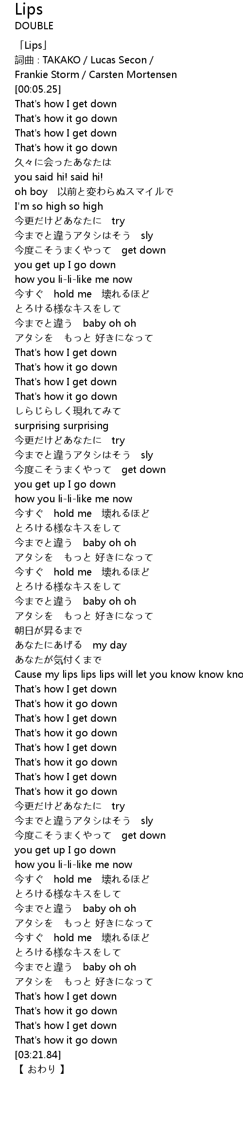 | [00:01.25] | 「Lips」 |