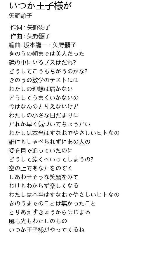 | [00:01.000] | 作曲 : 矢野顕子 |