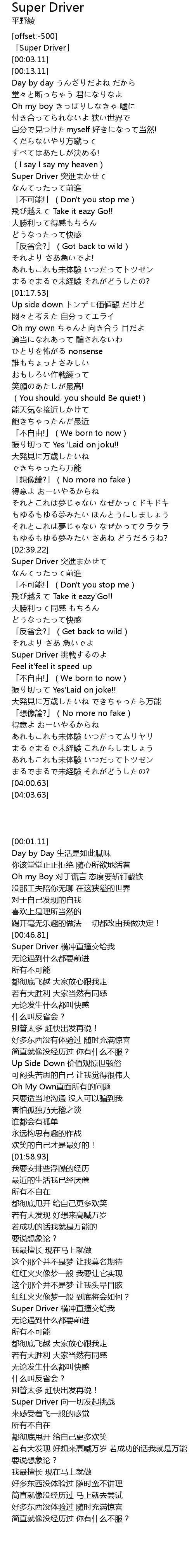 | [03:22.60] | Super Driver 挑戦するのよ |
