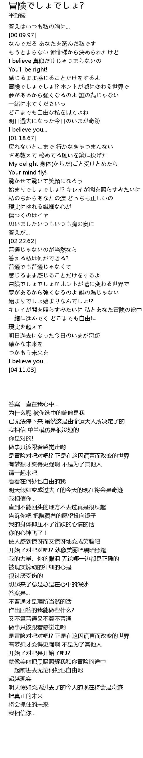 | [03:10.66] | 冒険でしょでしょ!? ホントが嘘に変わる世界で |