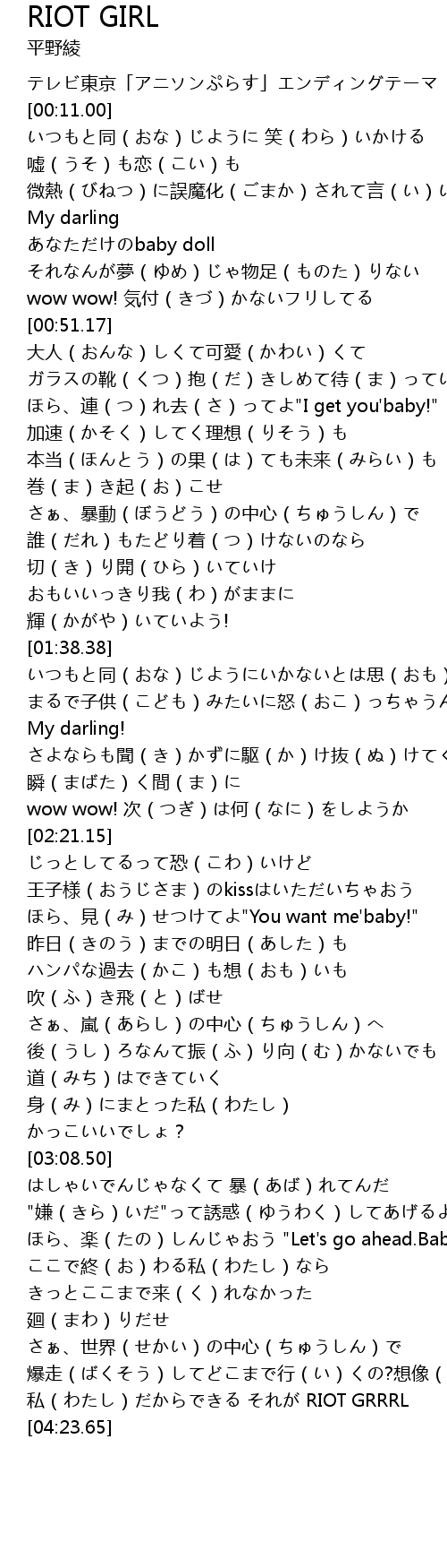 | [04:14.65] | 私(わたし)だからできる それが RIOT GRRRL |