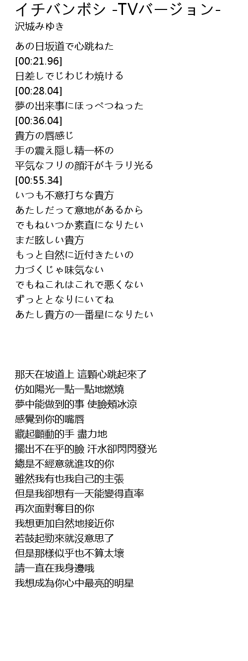 | [01:25.33] | あたし貴方の一番星になりたい |