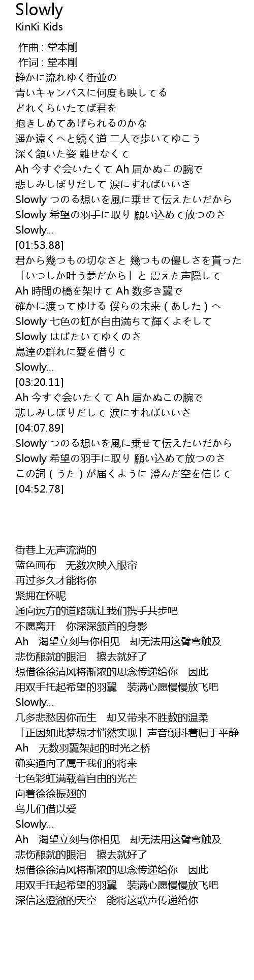| [04:15.58] | Slowly つのる想いを風に乗せて伝えたいだから |