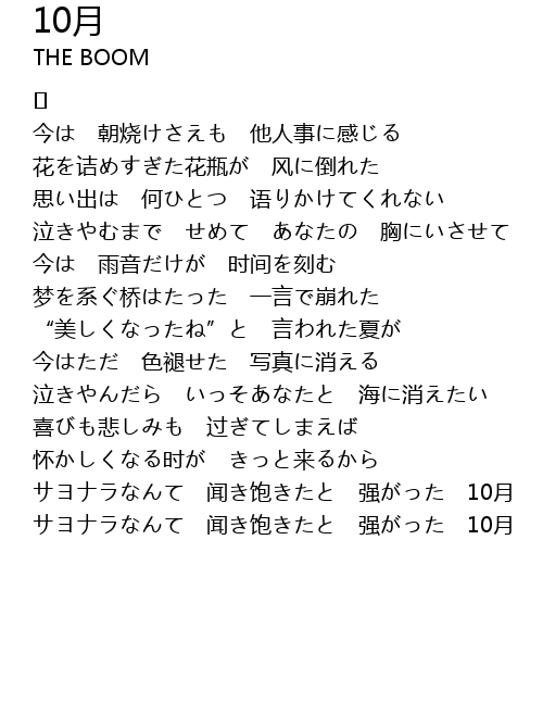 | サヨナラなんて 闻き饱きたと 强がった 10月 |