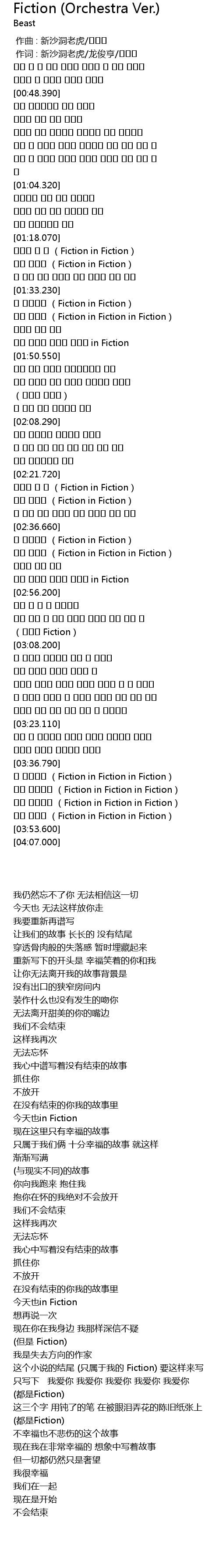 | [03:48.740] | 끝은 없는걸 (Fiction in Fiction in Fiction) |