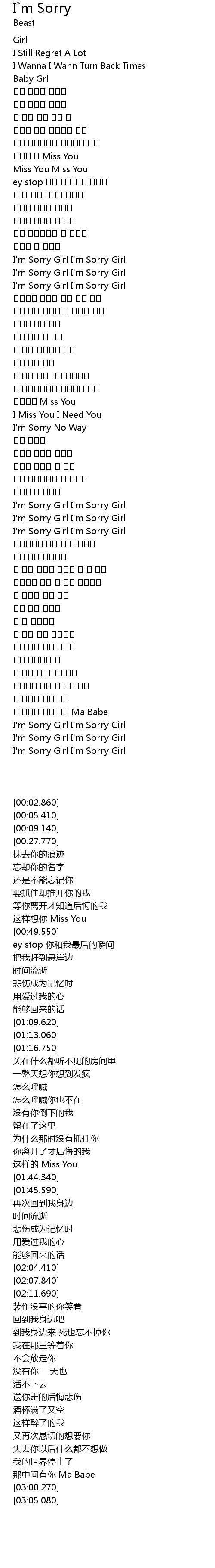 | [03:00.270] | I'm Sorry Girl I'm Sorry Girl |