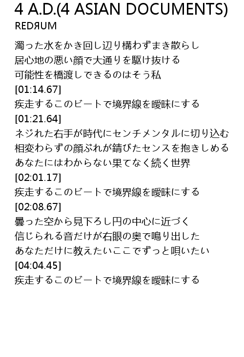 | Song | 4 A.D.(4 ASIAN DOCUMENTS) |