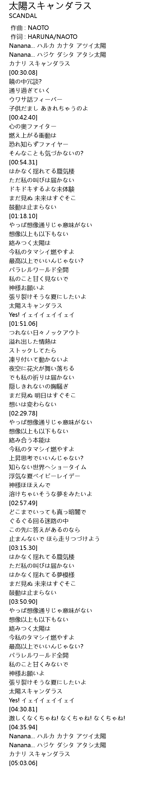 | [04:25.19] | 太陽スキャンダラス |