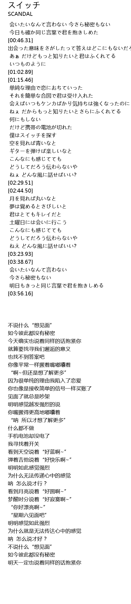 | [00:31.03] | 会いたいなんて言わない 今さら秘密もない |