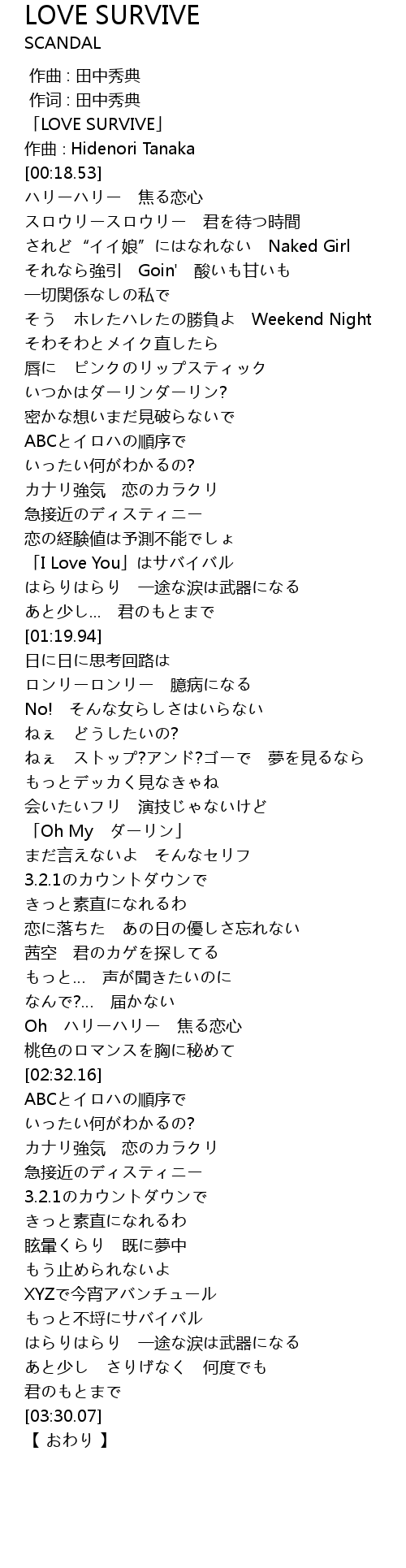 | [00:01.53] | 「LOVE SURVIVE」 |