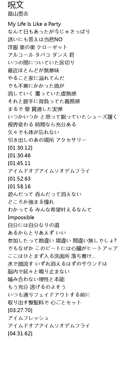 | [00:31.35] | My Life Is Like a Party |