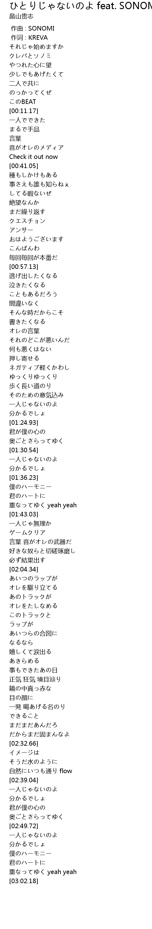 | [00:00.19] | 作词 : KREVA |