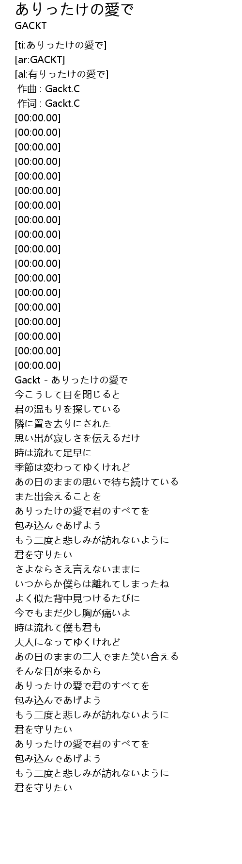 | [00:00.00] | zuò cí : Gackt. C |