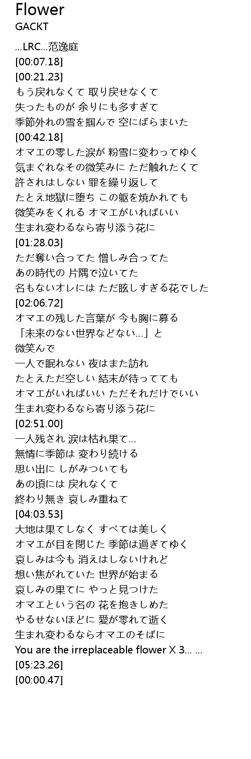 | [04:53.37] | You are the irreplaceable flower X 3... ... |