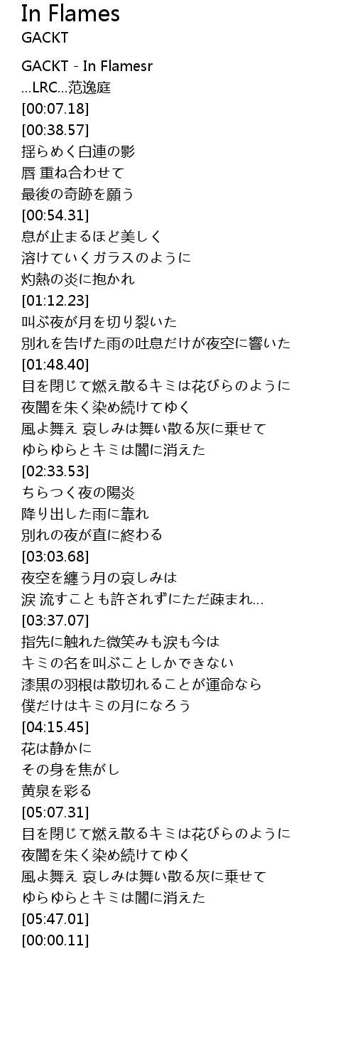 | [00:01.18] | GACKT - In Flamesr |