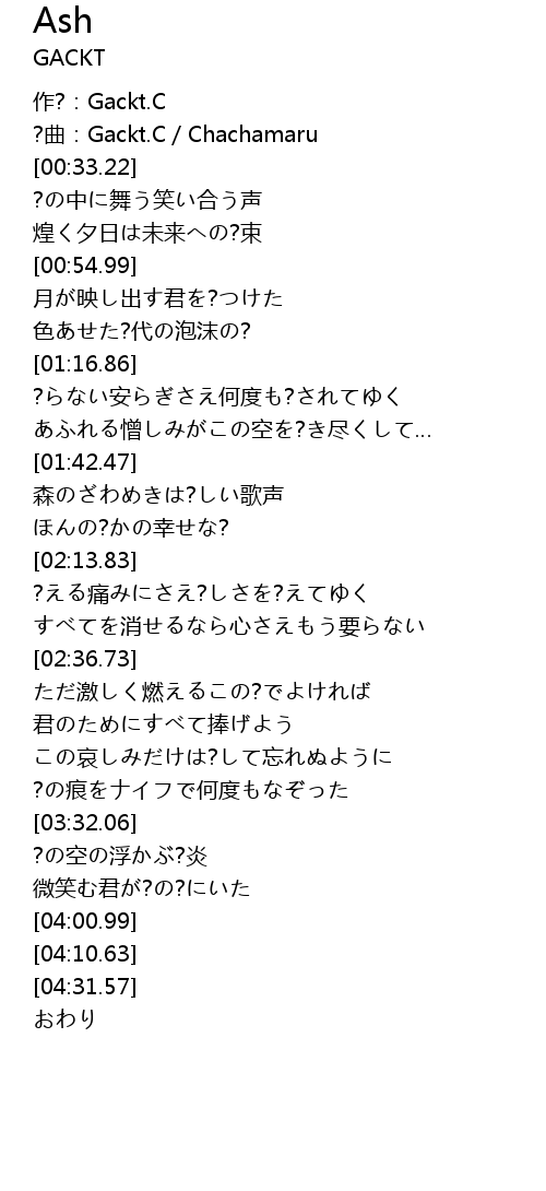 | [00:29.22] | ? qū: Gackt. C Chachamaru |