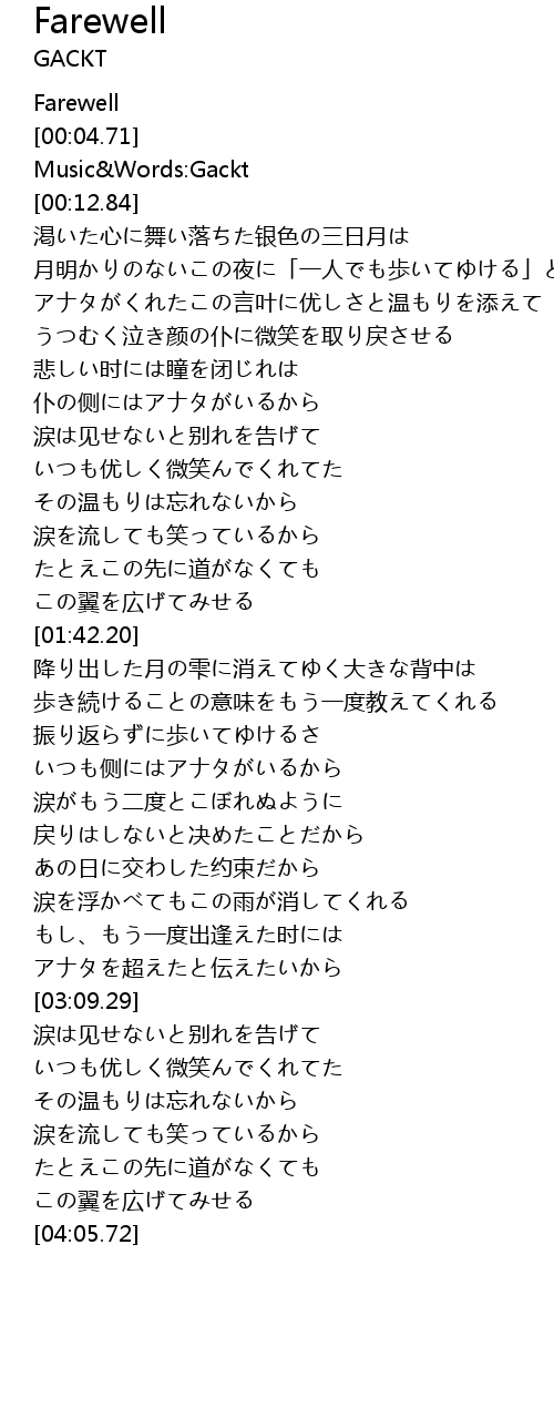 | [03:28.16] | 涙は见せないと别れを告げて |