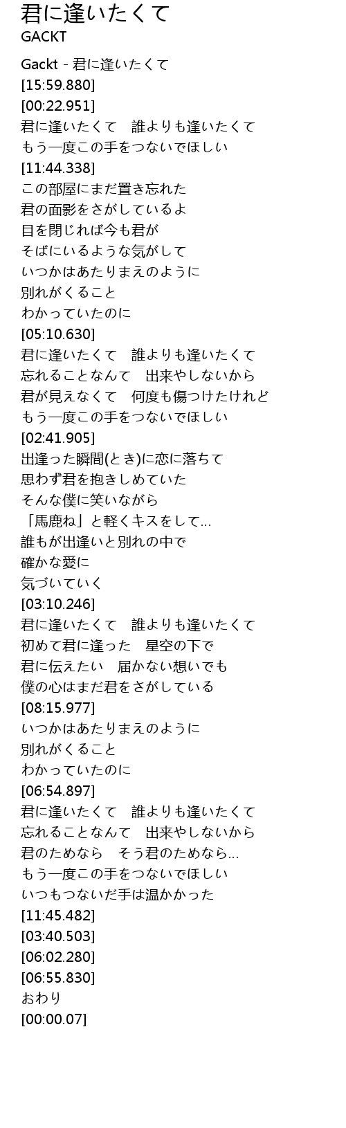 | [05:19.685] | Gackt - 君に逢いたくて |