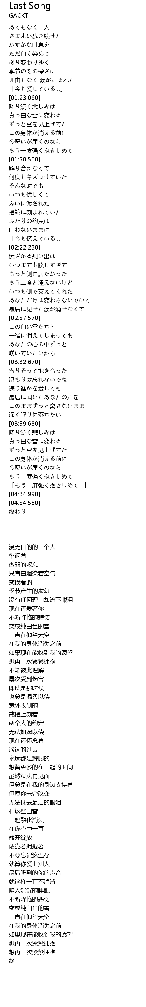 | [03:46.530] | 最后に闻いたあなたの声を |