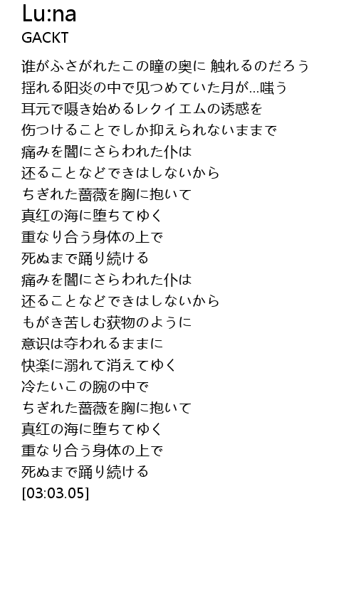 | [01:17.76] | 真红の海に堕ちてゆく |