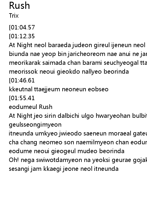 | [02:32.57][01:55.41][00:54.37] | aswiul geotdo miryeondo eopda bollyumeul nopigo i eodumeul Rush |