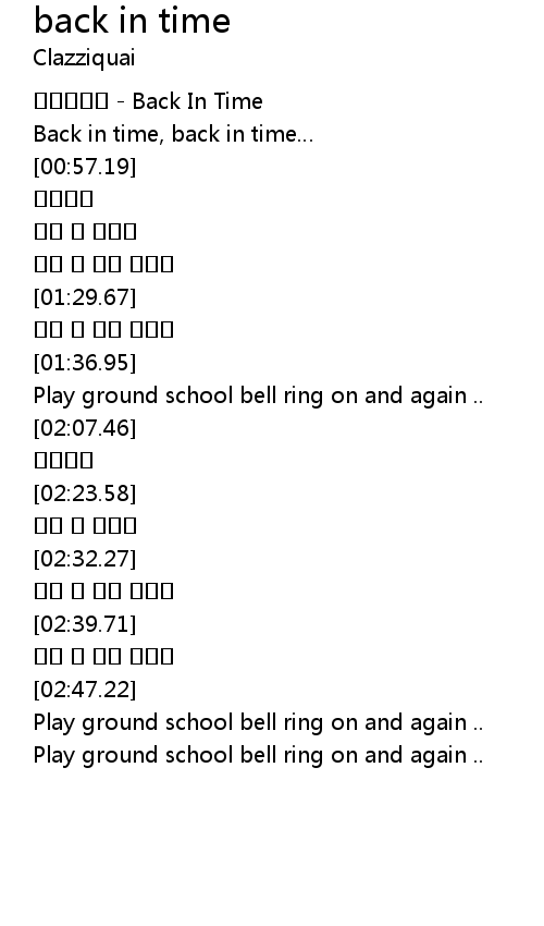 | [00:29.27] | Back in time, back in time |