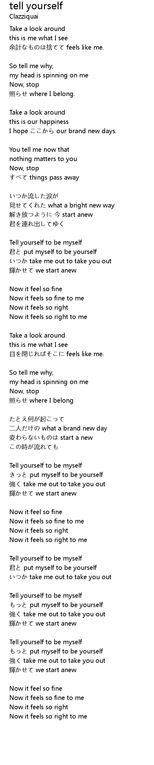 | Tell yourself to be myself | |