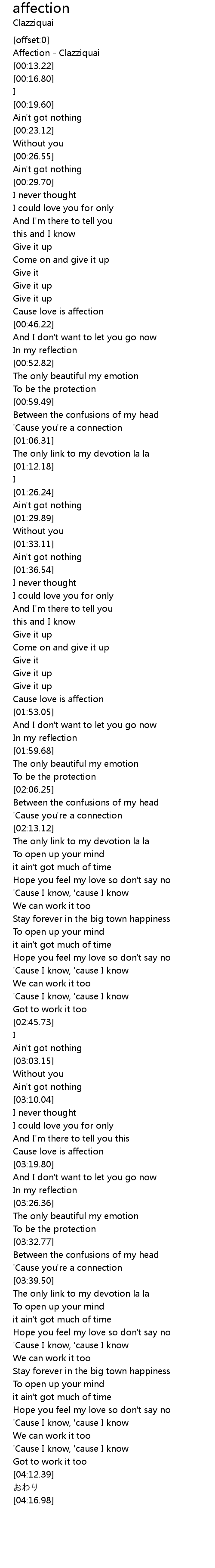 | [00:00.52] | Affection - Clazziquai |