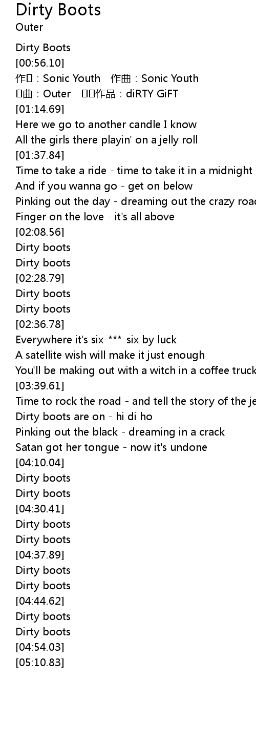 | [04:50.47] | Dirty boots |