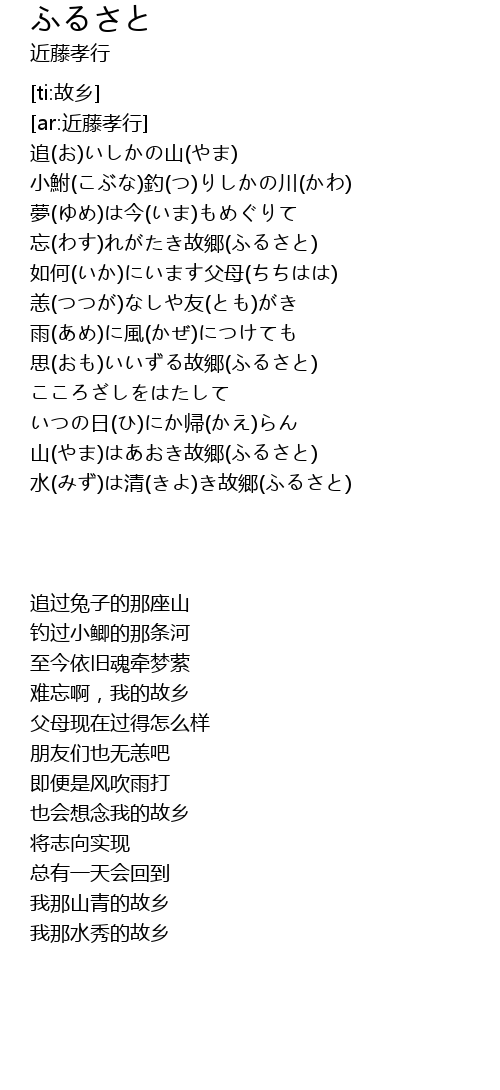 | [00:50.730] | 忘(わす)れがたき故郷(ふるさと) |
