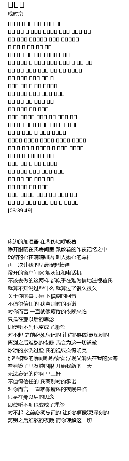 이별 후에 힘겨운 밤들을 모두 다 사과할께 |