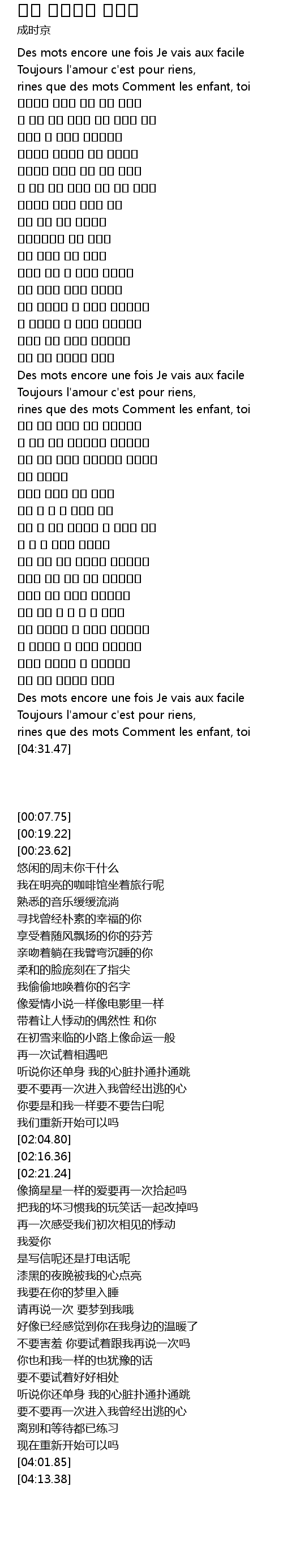 | [04:01.85] | Des mots encore une fois Je vais aux facile |
