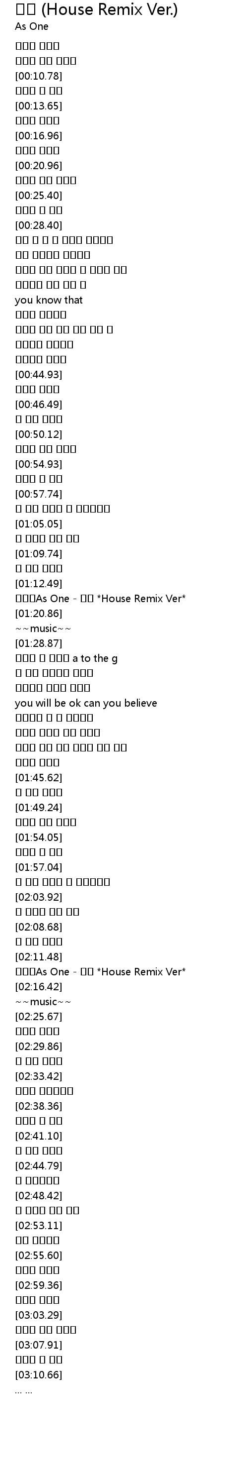 | [01:15.50] | As One House Remix Ver |