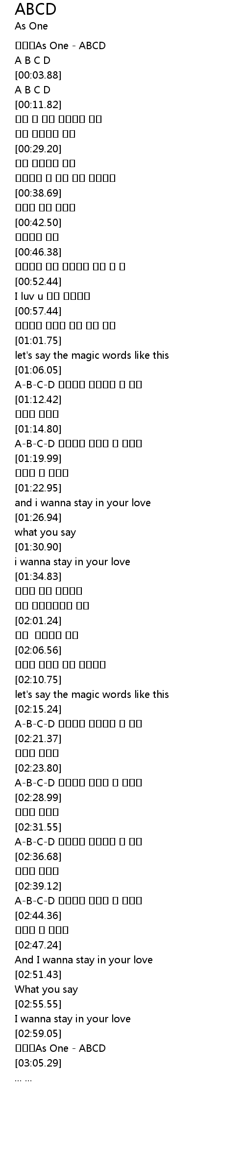 | [01:15.36] | A-B-C-D 사탕처럼 달콤한 그 한마디 |