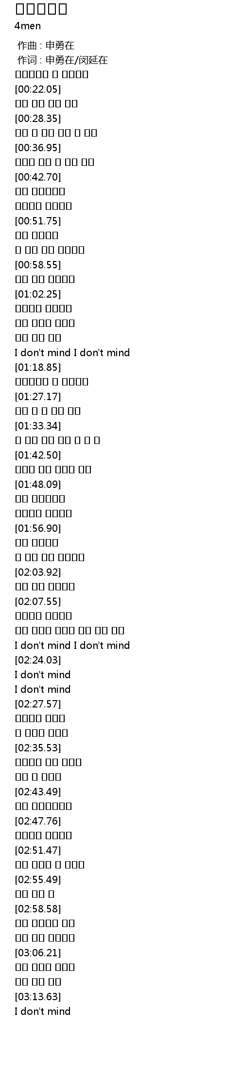 | [00:01.00] | 作词 : 申勇在/闵延在 |